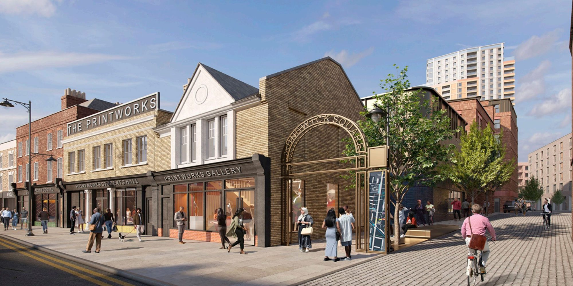 The Printworks development is located at 807 and 819–829 High Road, Tottenham, occupying a prominent position along Tottenham High Road. The site includes a series of listed heritage buildings that contribute to the historic character of the street and form an important part of the local townscape.